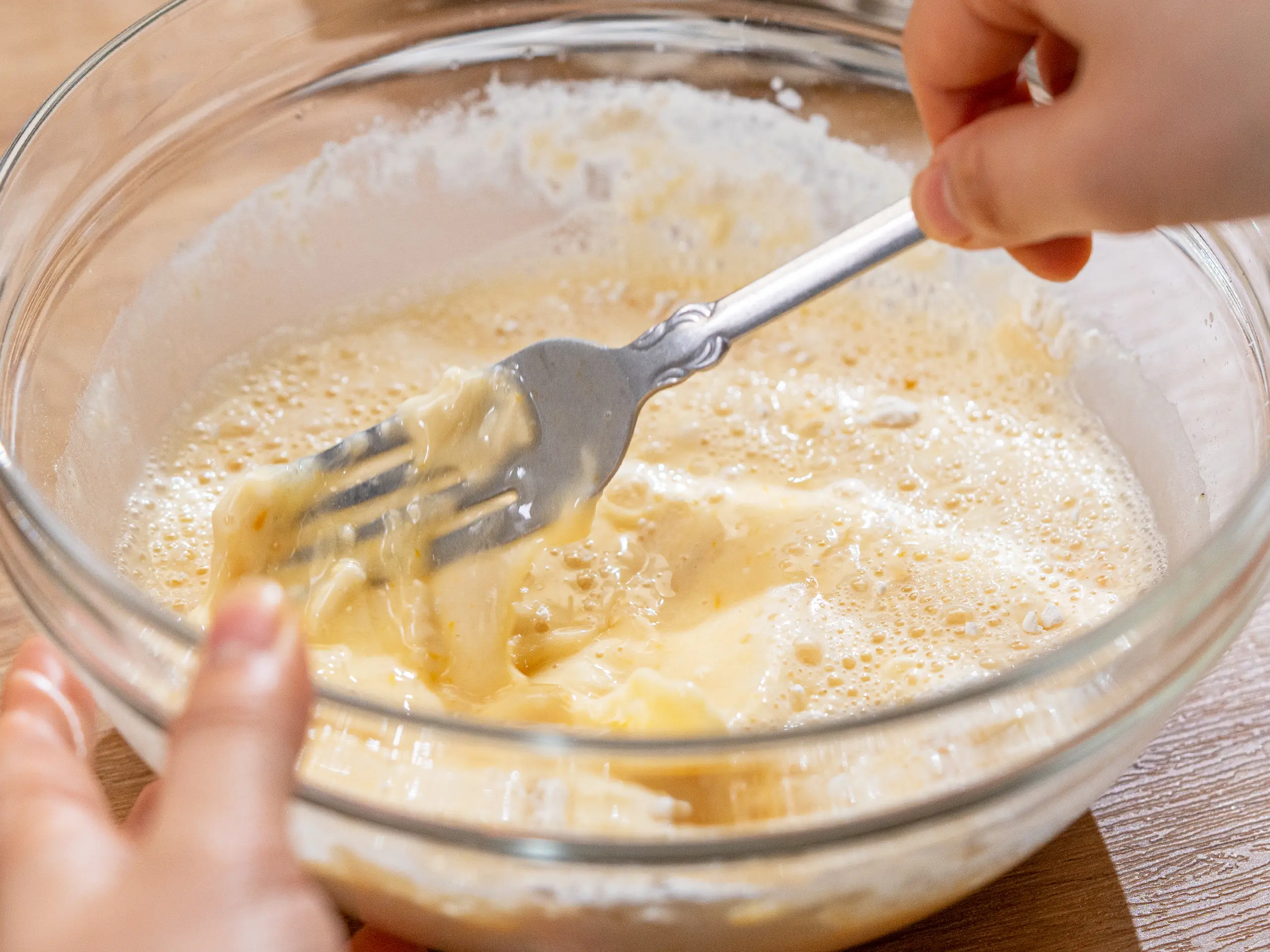 Mix the Water (1 cup) with Eggland's Best Classic Egg (1) and Vodka (4 Tbsp) in a big bowl, and add All-Purpose Flour (3/4 cup) to the egg mixture. Mix the batter gently, but be careful not to overmix. It's okay to leave some lumps in the batter. Keep the batter really cold at all times.