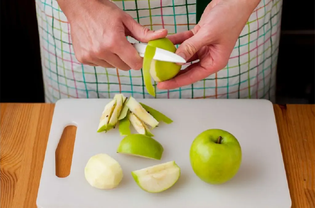 Peel, core, and cut the Green Apples (4) into 16 pieces. Add half of these fruits halfway through the cooking time.
