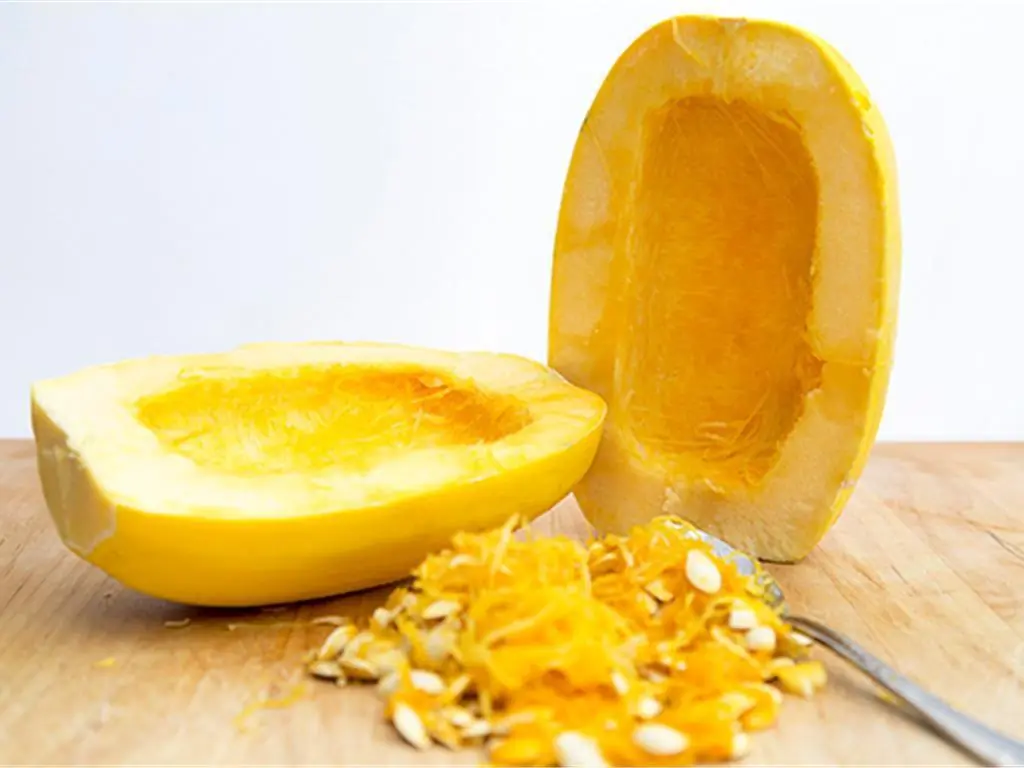 Halve the Spaghetti Squash (1) and remove the seeds.