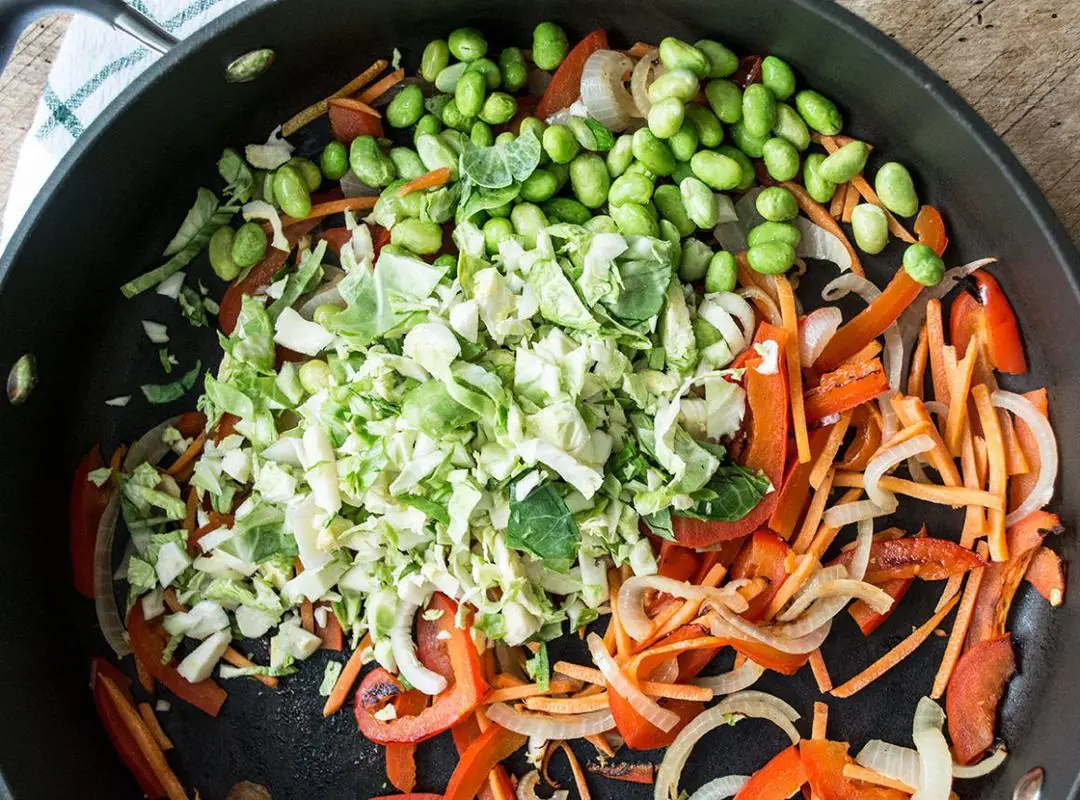 Add Brussels Sprouts (3/4 cup) and Edamame (1/2 cup) and cook another 5-7 minutes or until all vegetables are crisp tender - or cooked to your liking.
