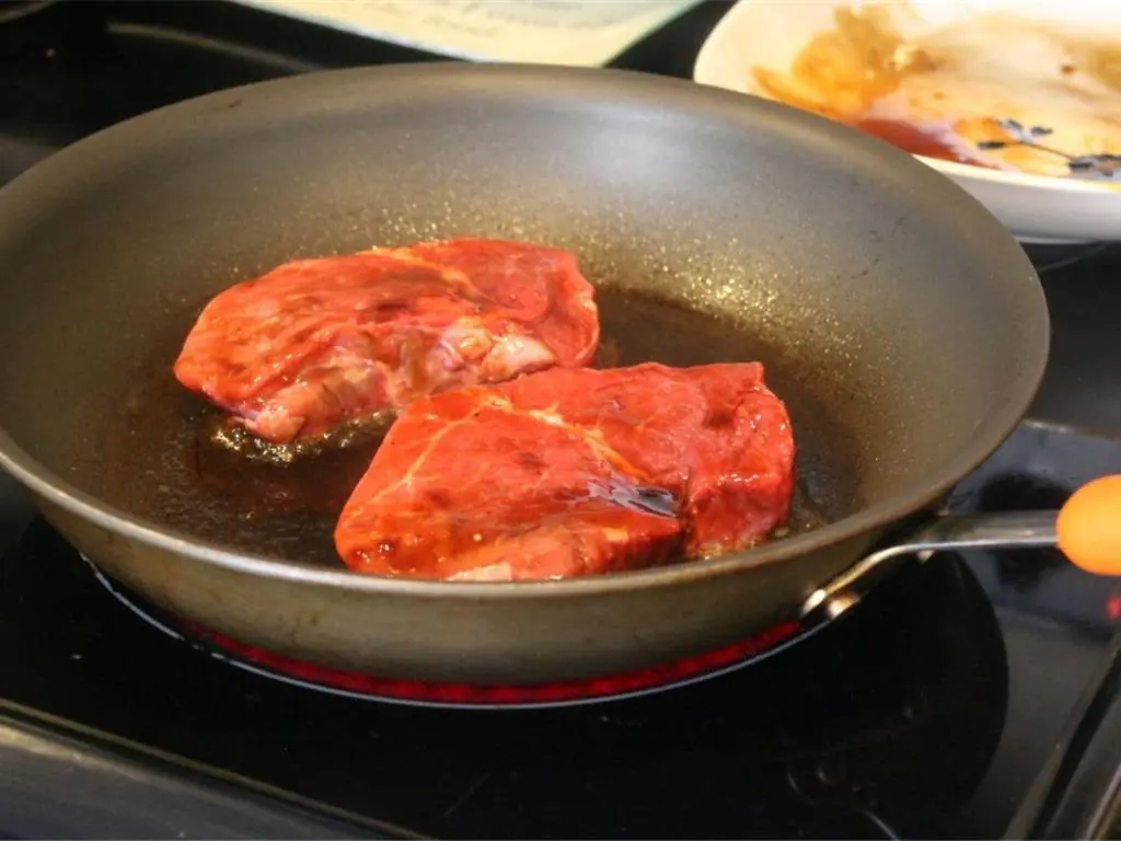 Cook the steaks for 3-4 minutes on each side until medium-rare and browned on the edges. Remove from the heat, and let rest to cool.