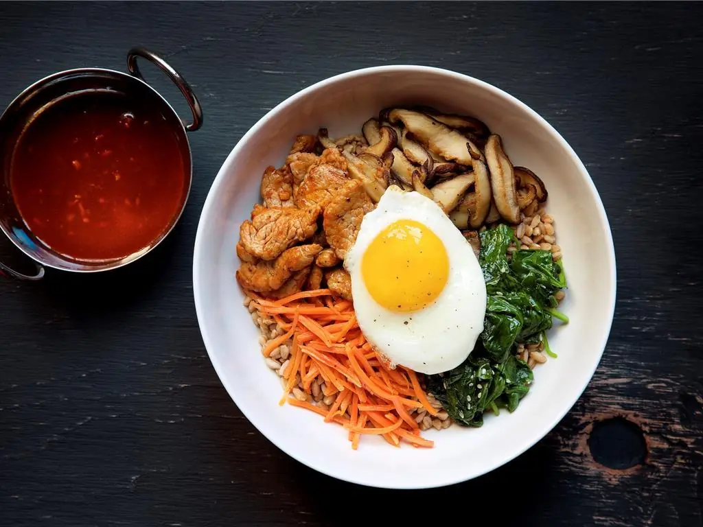 Time to spice up your life! This traditional Korean dish gets its firey flare from Gochujang paste - the crimson condiment made from chili peppers, rice and soybeans. Nutty farro serves as the base for the tender slices of pork and tons of fresh veggies. This is a gorgeous meal...plus an egg!