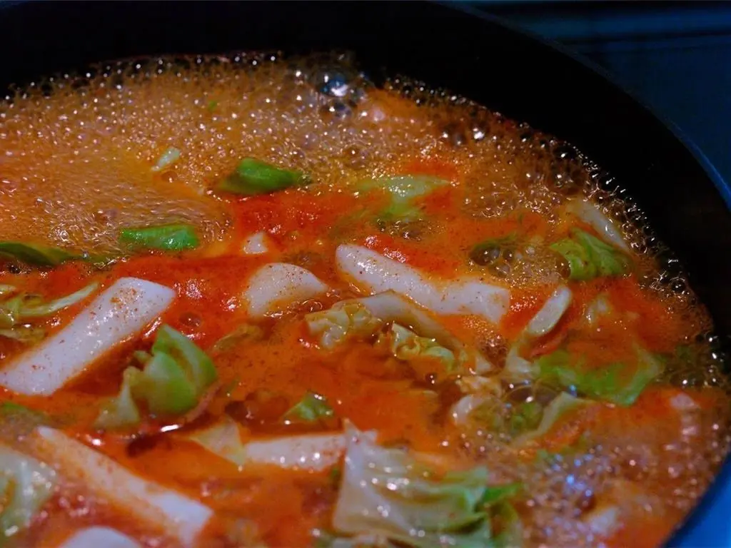 Let them boil first and simmer over medium-low heat for 10 min, until the rice cakes and the cabbage soften. The sauce will get slightly thicker, too.