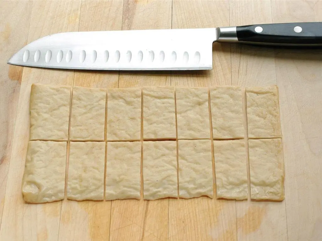 This is optional but if you like the addition of the fish cakes, slice the Flat Fish Cakes (3 slices) into even pieces.