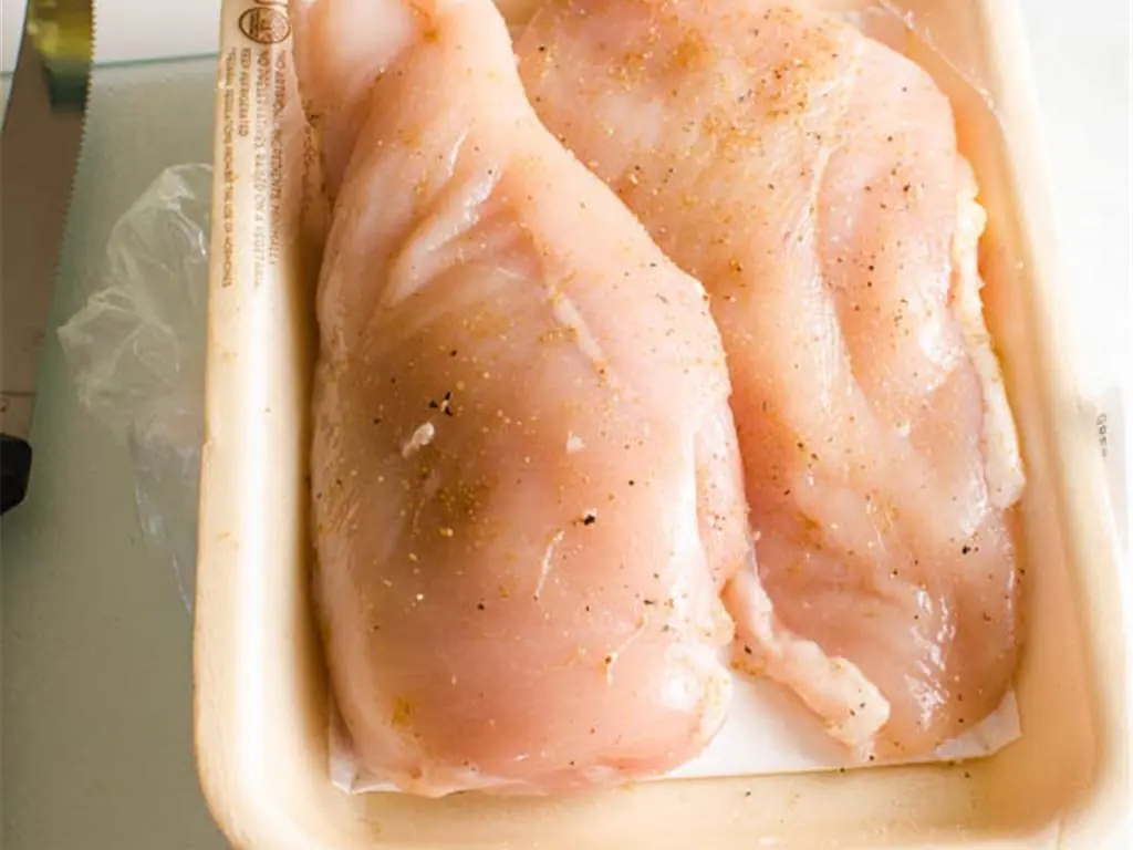 Slice the organic chicken breasts into 1/2" strips and place on top the the quinoa.