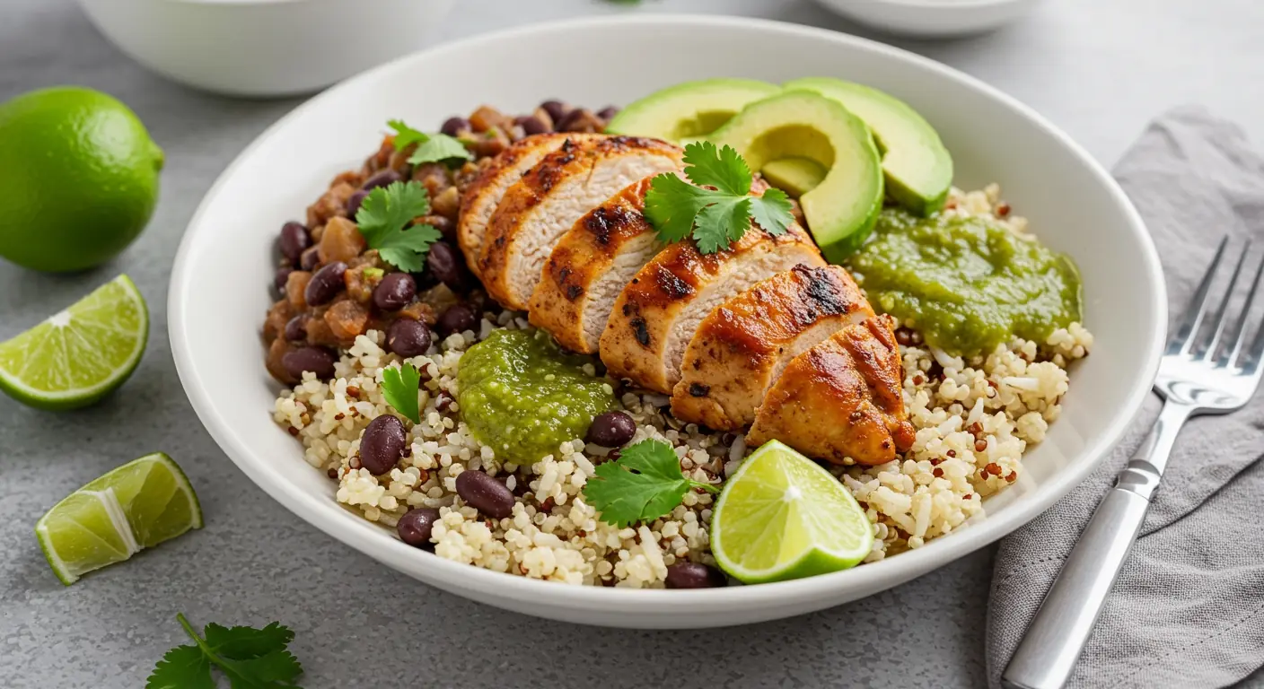 If you're craving something healthy and fresh with tons of flavor this Spicy Protein Bowl recipe is everything you've been looking for. Brown rice and quinoa topped with seared chicken breast, savory black beans, sliced avocado, and salsa verde is an easy 30-minute meal. Packed with both an amazing flavor and all the healthy nutrients you need!