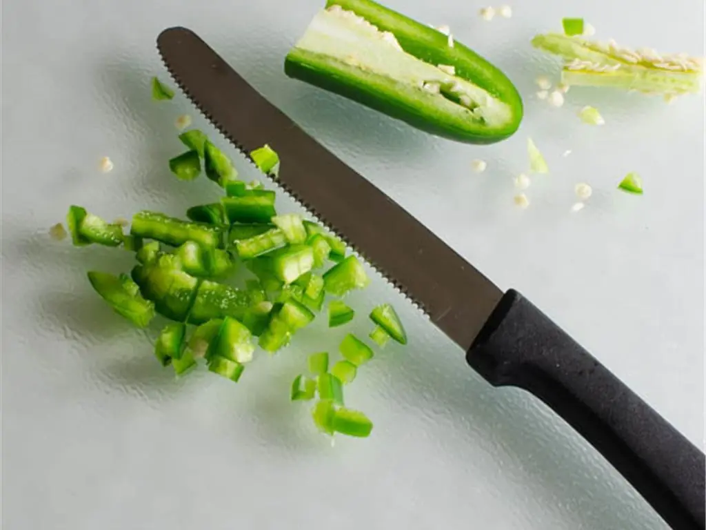 Add Olive Oil (1 Tbsp) to the same skillet over medium-high heat. Add half of the Onion (1/3 cup) Green Bell Pepper (1/3 cup), Celery (1/3 cup) and diced jalapeño pepper. Sauté until vegetables are tender and slightly translucent. Stir in Salsa Verde (1 1/4 cups).