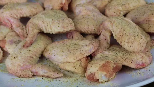 Season each Chicken Wings (12) with All-Purpose Spice Rub (4 Tbsp) on both sides.