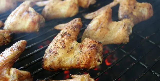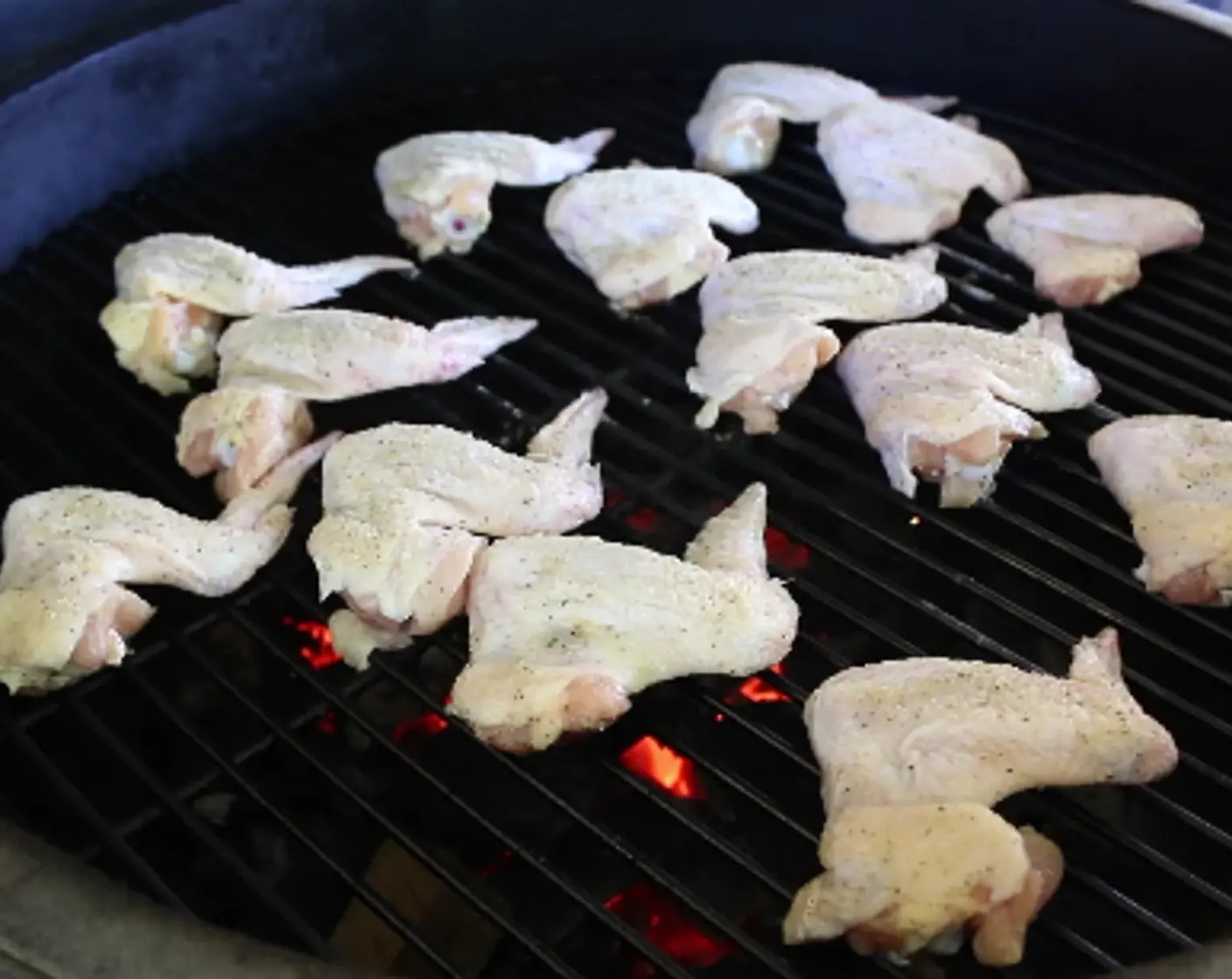 Arrange wings on cooking grate directly over hot coals. Adjust the grill vents so that temperature remains constant at 325 degrees F (160 degrees C).
