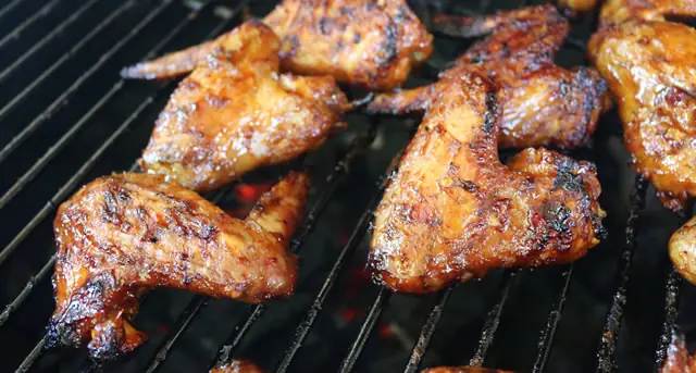 After wings have cooked for 25-30 minutes, dunk each wing in the sauce and return to grill.