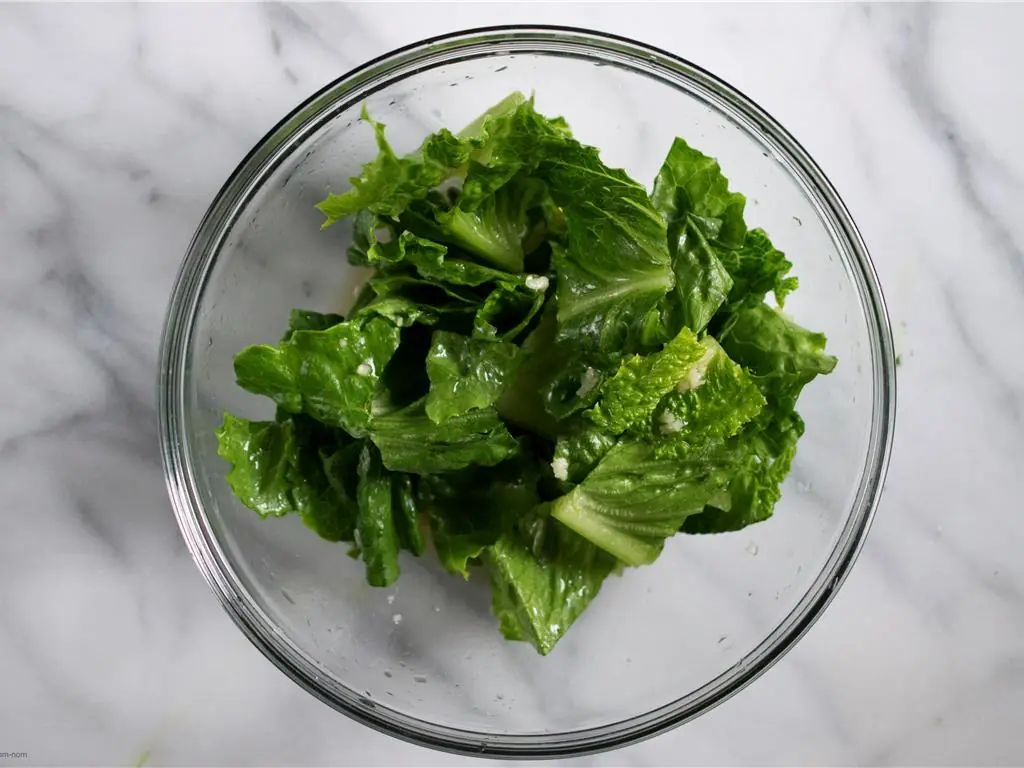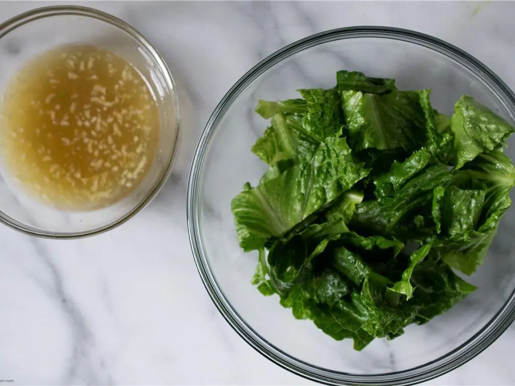 Toss in the Romaine Lettuce (1 1/4 cups) to coat. Set aside until ready to use.