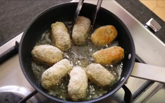 Heat a small frying pan over a medium-high heat and add Sunflower Oil (1/3 cup). Once the oil gets hot, add the croquettes into the pan and fry for 60-75 seconds on each side. Transfer to a dish with paper towels as finished.