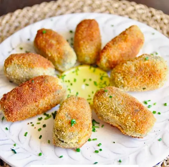 Arrange croquettes around Lemons (to taste) and sprinkle dish with Fresh Chives (to taste). Serve immediately and enjoy!