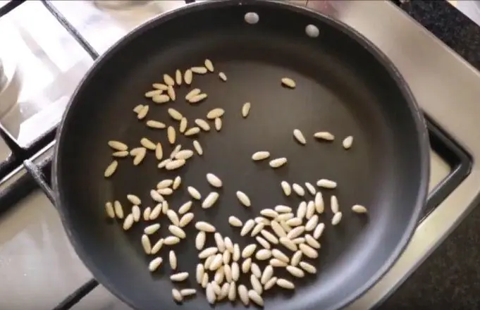 Heat a nonstick frying pan over a medium heat and dry roast Pine Nuts (2 Tbsp) for 4-5 minutes. Set aside.