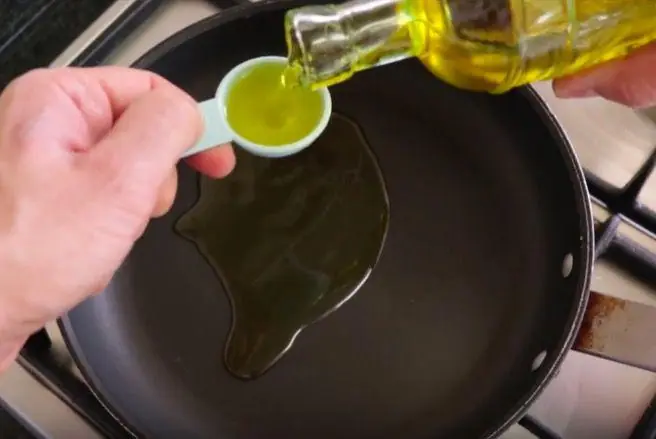 Heat the same pan over medium heat and add Extra Virgin Spanish Olive Oil (2 Tbsp). Allow to warm up for 2 minutes.