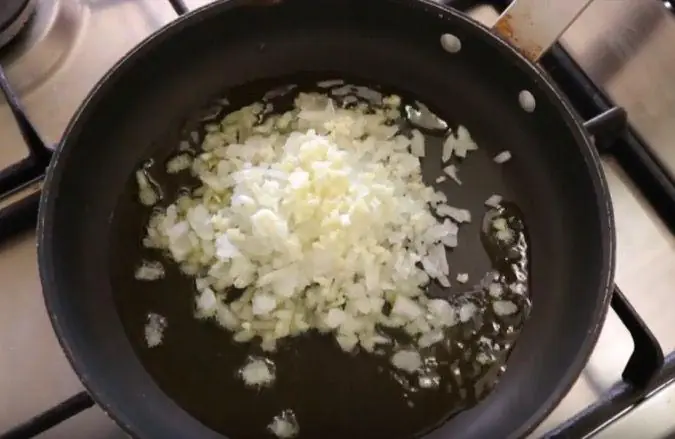 Add the Garlic (2 cloves) and Onion (1) and mix with the oil. Cook for about 4 minutes.