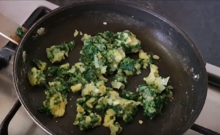 Add All-Purpose Flour (4 Tbsp) and mix together until well incorporated, then add the spinach back in. Season everything with Sea Salt (to taste) and Ground Black Pepper (to taste).