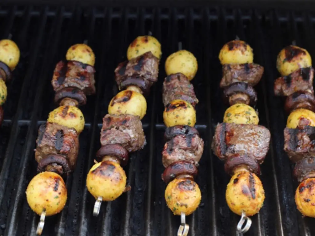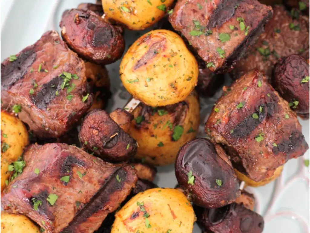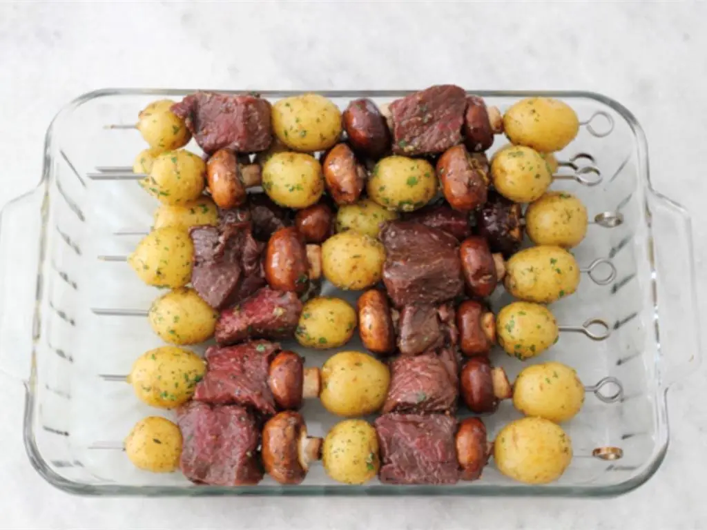 You will love these kebabs, I’m sure. What could be more wonderful than steak, mushrooms, and potatoes together?