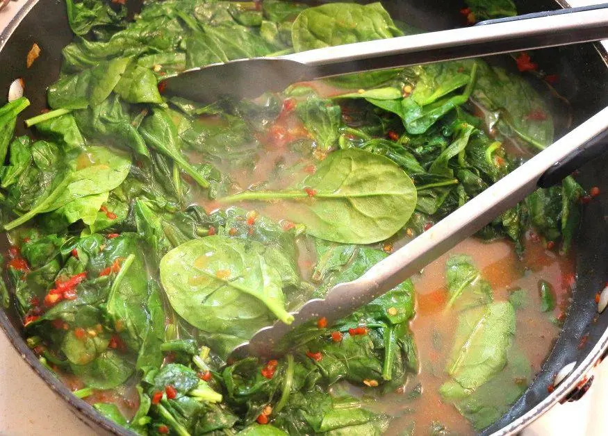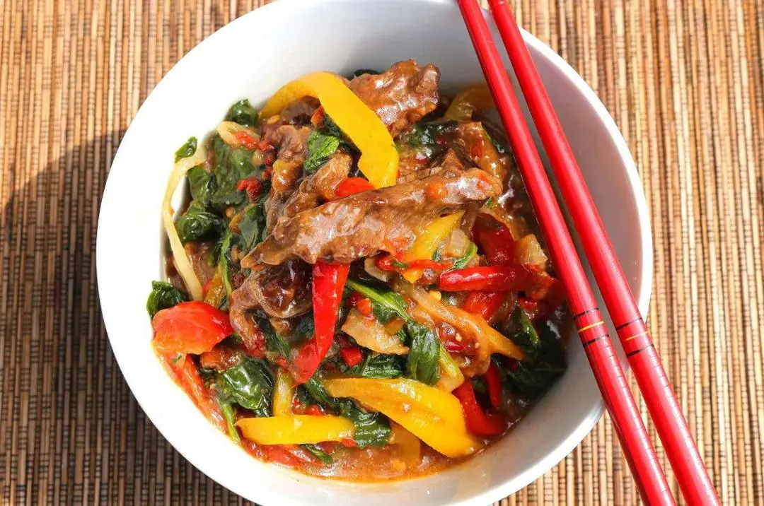 Stir Fried Beef and Spinach in Cherry Peppers Sauce