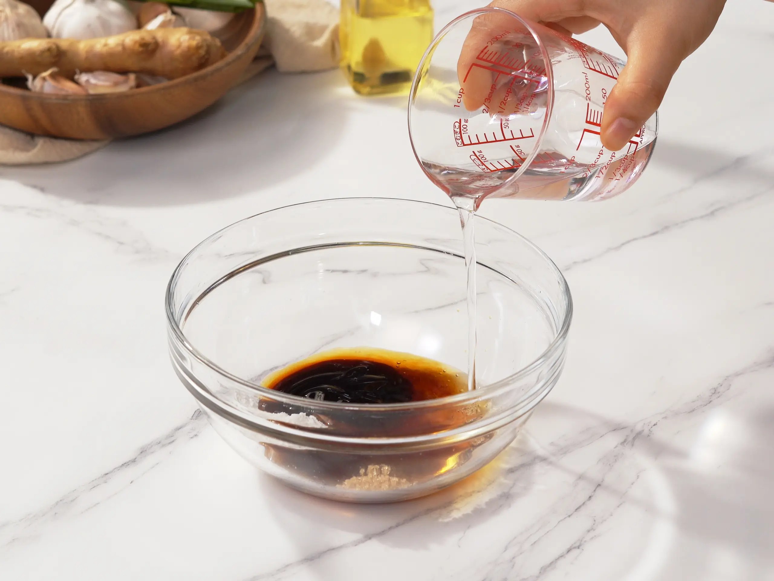 In a small mixing bowl, combine Water (1/2 cup), Soy Sauce (2 Tbsp), Oyster Sauce (2 Tbsp), Corn Starch (1 tsp), and Brown Sugar (1 tsp). Set aside.
