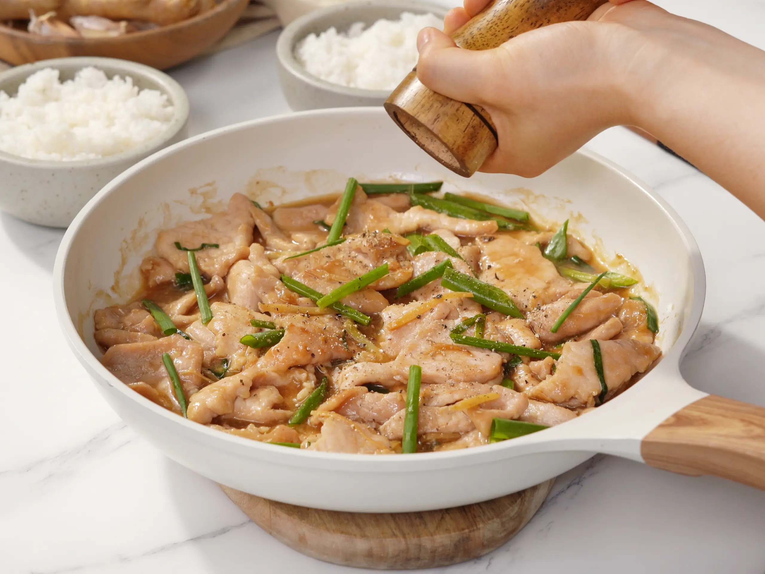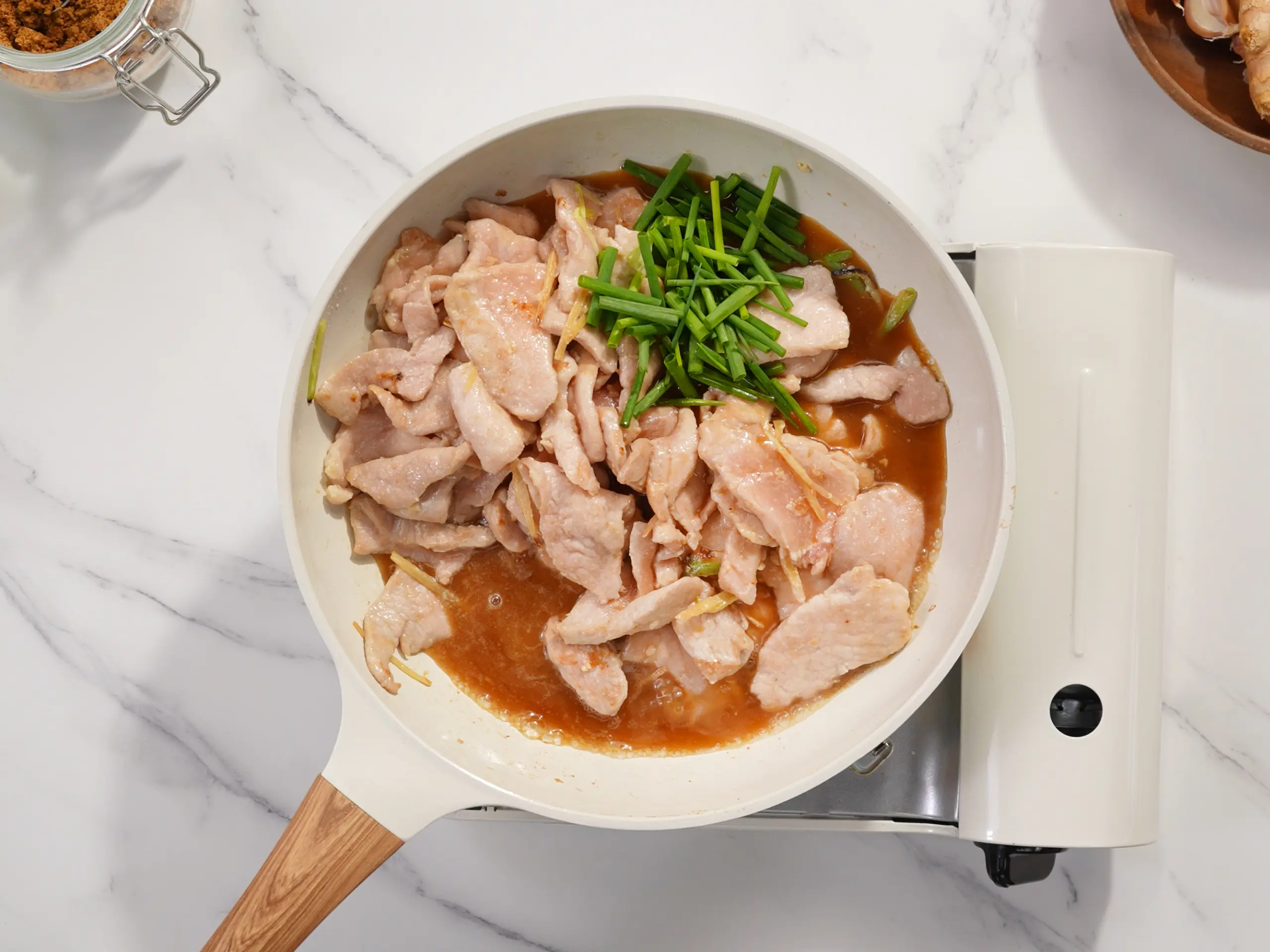 This simple and quick Stir Fry Pork with Ginger and Scallion dish is perfect with a bowl of plain rice. Tender marinated pork with a nice Asian-style gravy combined with aromatic and sweet scallion make this velvety and savory dish an easy addition to your weeknight dinner recipe book.