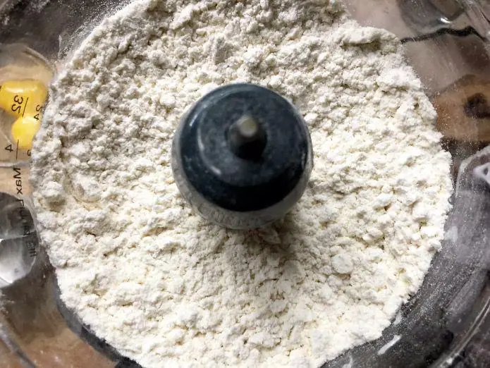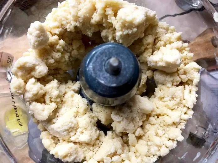 In a food processor, pulse All-Purpose Flour (1 3/4 cups), Butter (1/2 cup), and Salt (1/2 tsp) for 10 to 20 seconds or until mixture looks like fine crumbs. Do not overprocess.