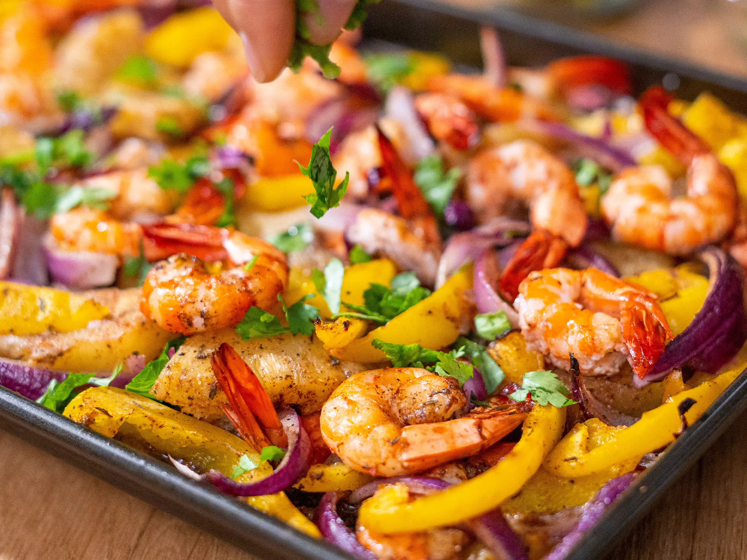 This Sweet and Spicy Jerk Shrimp is a blast of Jamaican flavors. The shrimp are roasted and caramelized perfectly. The pineapple gives a sweet freshness to balance the heat of the jerk seasoning. Everything is just done in one sheet pan, who doesn't want a quick, easy, and tasty dinner after a long workday?