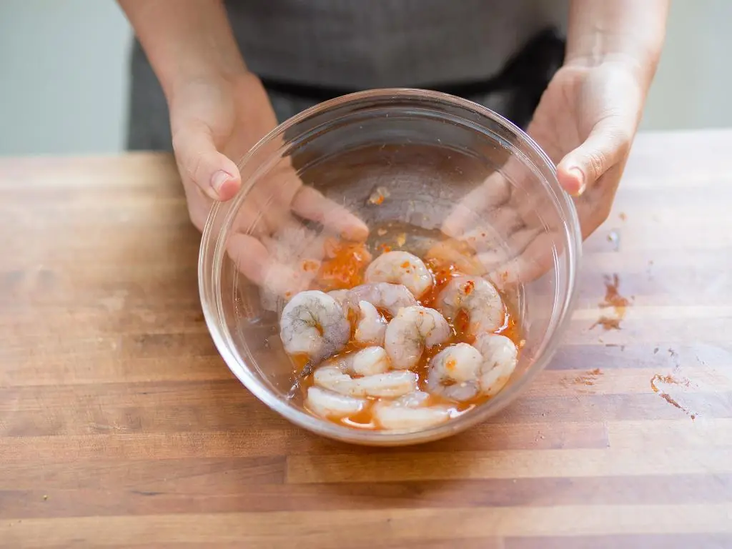 Pat dry the Shrimp (12) with paper towels and place in a medium bowl.