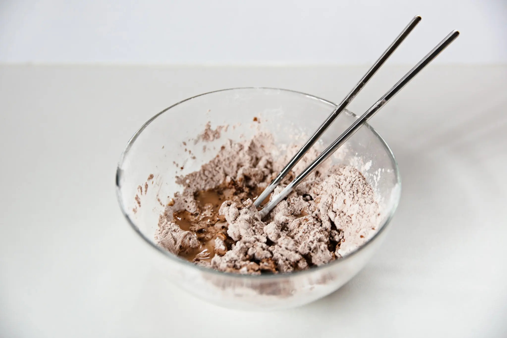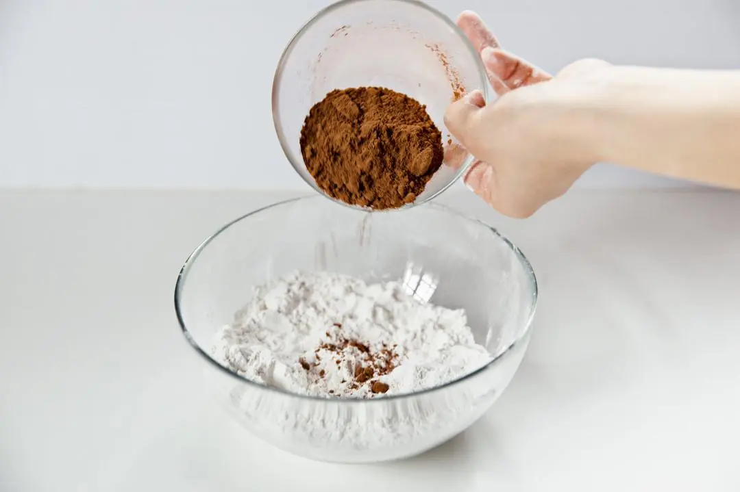 In a bowl, combine Water (to taste), Sweet Glutinous Rice Flour (1 2/3 cups) and Unsweetened Cocoa Powder (1 cup).