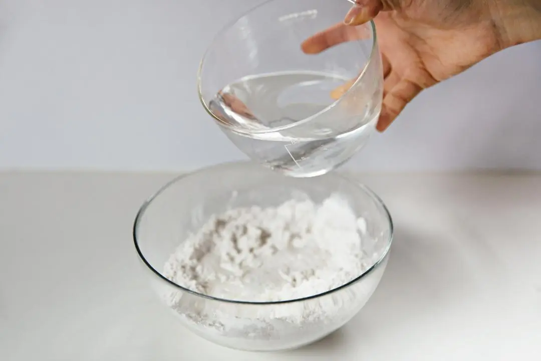 In another bowl combine Water (to taste) and the remaining Sweet Glutinous Rice Flour (1 2/3 cups).