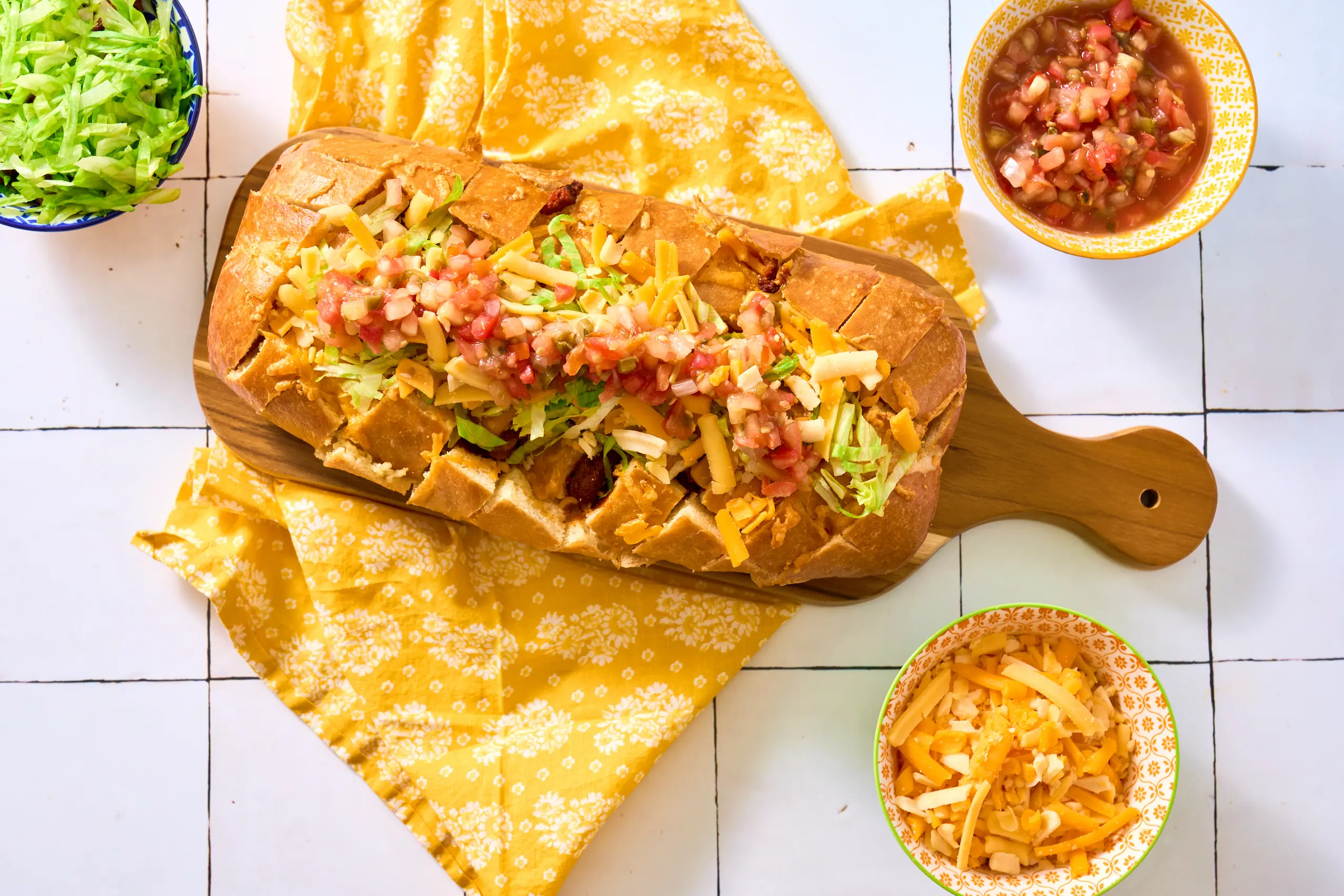 Taco Pull-Apart Bread is always a winning dish, from tailgating to the holidays and everything in between. This fun and tasty recipe combining bread with your favorite taco ingredients can be prepared in 30 minutes.