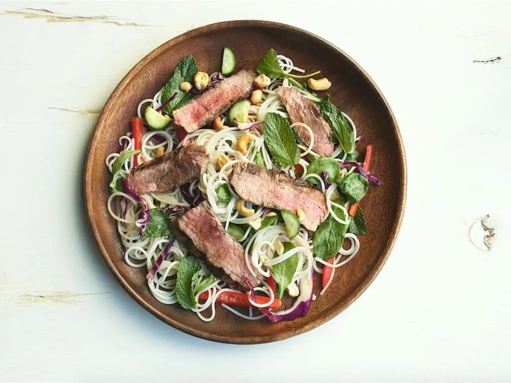 "In this salad, a little beef goes a long way. The headliners here are the veggies and the dressing." - Rebecca Katz