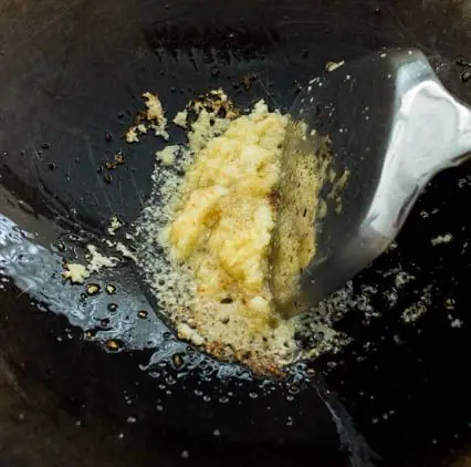 Add Fresh Ginger (1 Tbsp) and Garlic (4 cloves) to the oil. Sauté until aromatic, approximately 30 seconds to 1 minute.