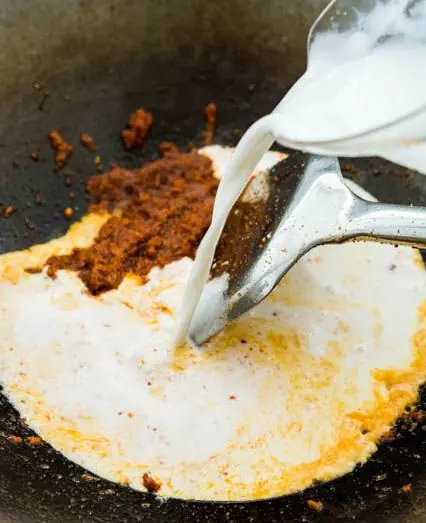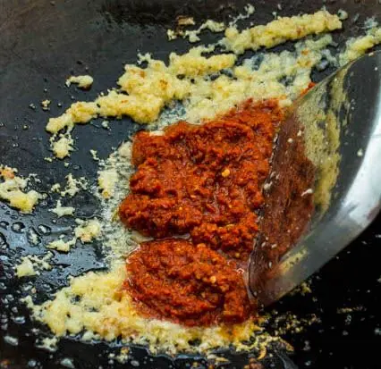 Add Thai Red Curry Paste (3 Tbsp) to the mix, then saute for another minute.