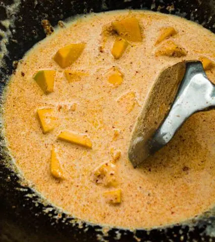 Add the Pumpkins (1 1/2 cups) to the wok, then let it simmer for about 2 minutes