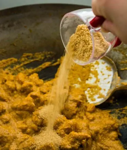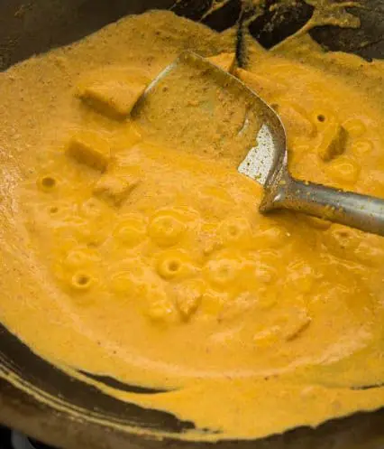 Reduce the heat to low and allow the curry to simmer for about 15 more minutes, stirring frequently. If the curry gets too thick, add water.