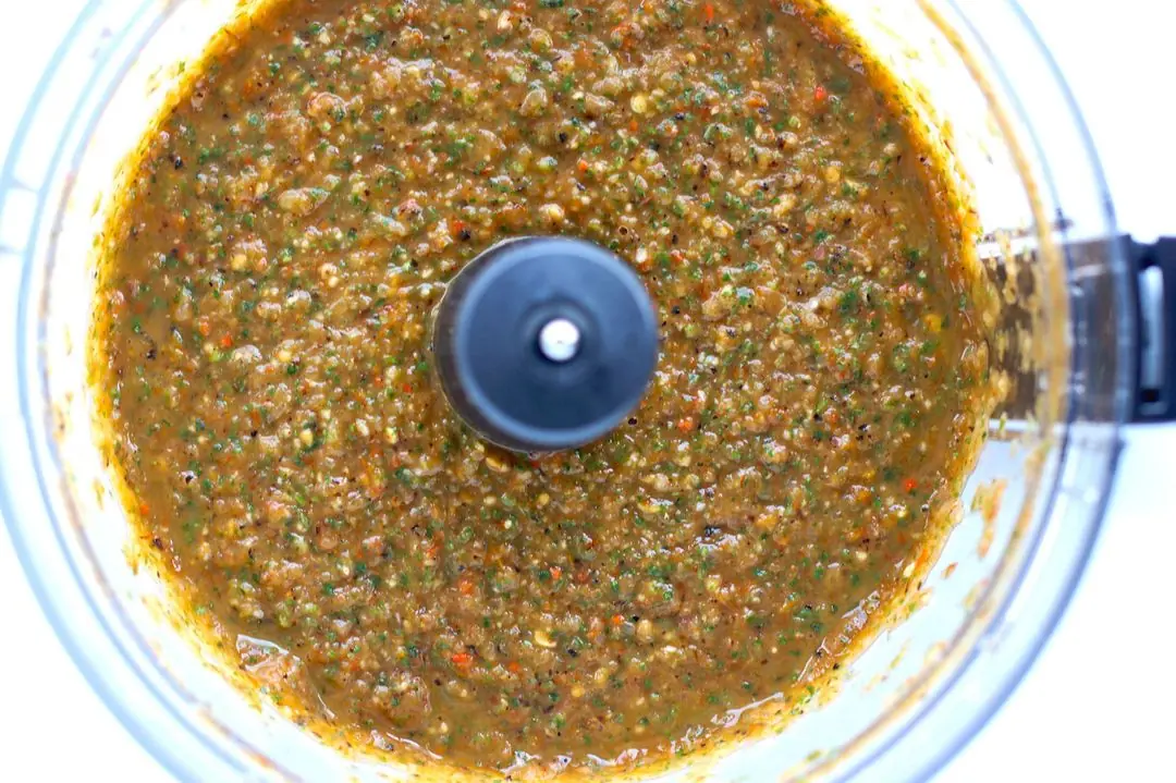 Season the mix with Kosher Salt (1 tsp), Freshly Ground Black Pepper (1/2 tsp), Ground Cumin (1/4 tsp), and Granulated Sugar (1/4 tsp), then puree until smooth or until desired consistency is reached.