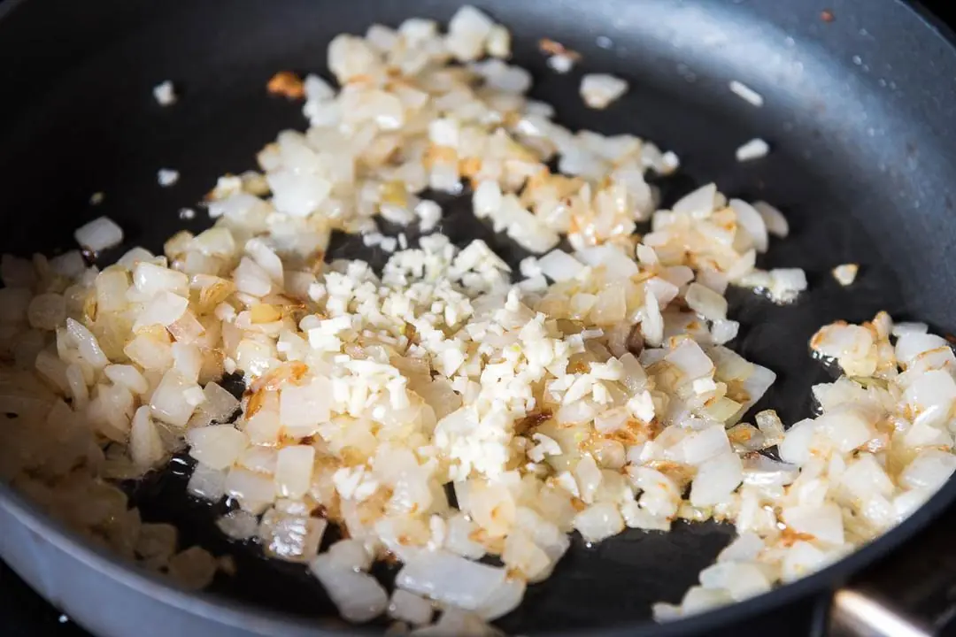 Mince the Garlic (2 cloves) and add to skillet. Cook another minute until softened. Turn to medium low heat if the skillet gets too hot.