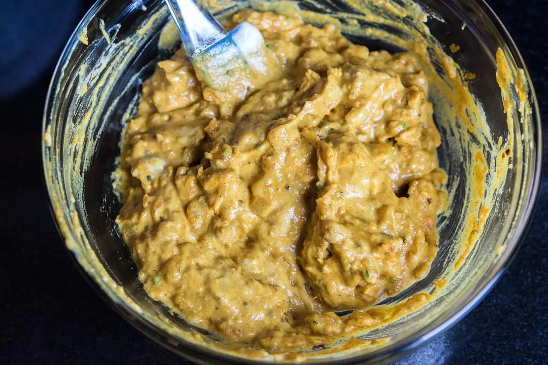 Place the Mashed Potatoes (3/4 cup) in a large bowl and pour in the curry mixture. Mix with a spatula until the liquid is absorbed. Let cool completely.