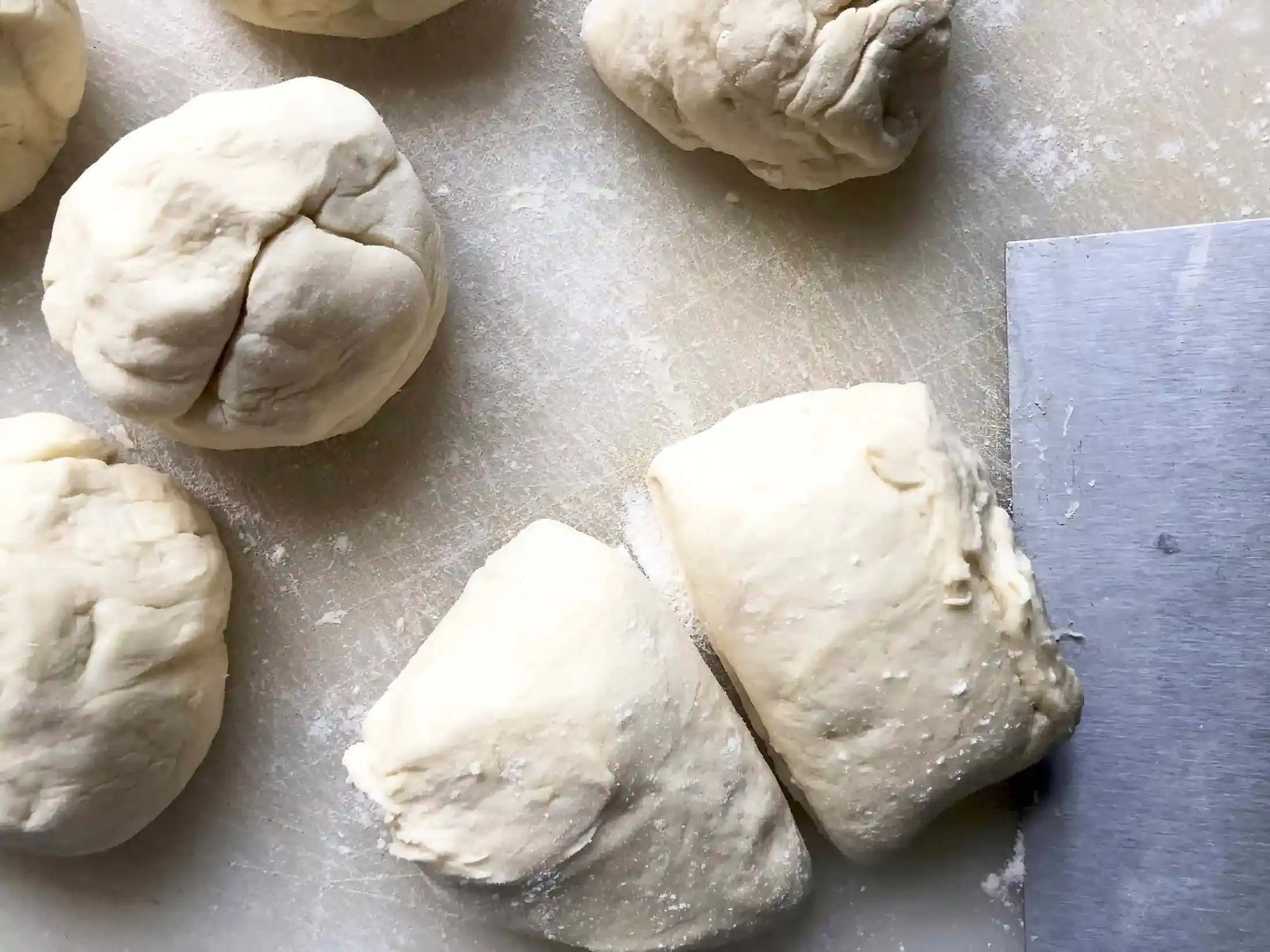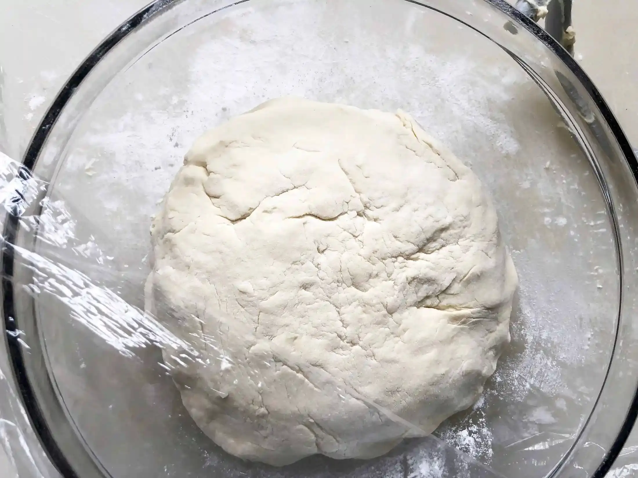 With floured hands, knead the dough into a ball. Cover the bowl with plastic wrap and let sit in a warm place for 1 hour, until doubled in size, or if not using right away, overnight in the fridge.