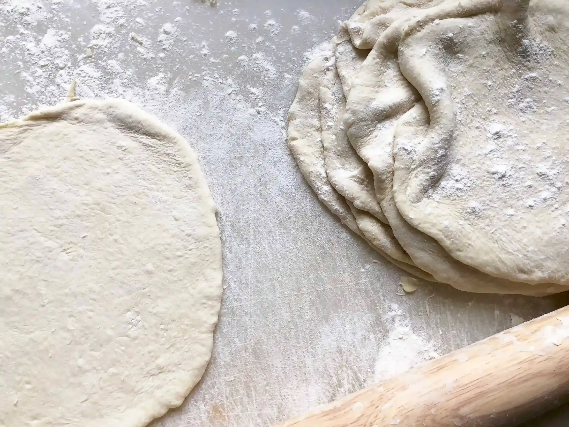 On a lightly floured surface, roll each one into a large oval about 8-inches in length and 1/4-inches thick. As you form the ovals and stack them in a pile, be sure to sprinkle them with flour to prevent sticking.
