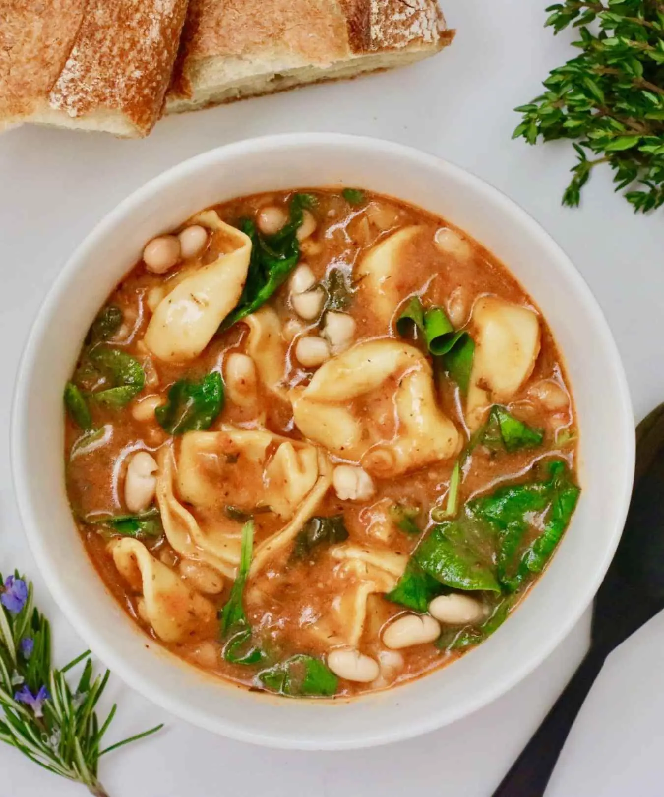 Add Vegan Cheese Tortellini (1 pckg) and Navy Beans (1 1/2 cups) and let boil. Once boiling, reduce heat and let simmer for about 10 minutes stirring occasionally. Tortellini should be cooked and sauce should thicken.