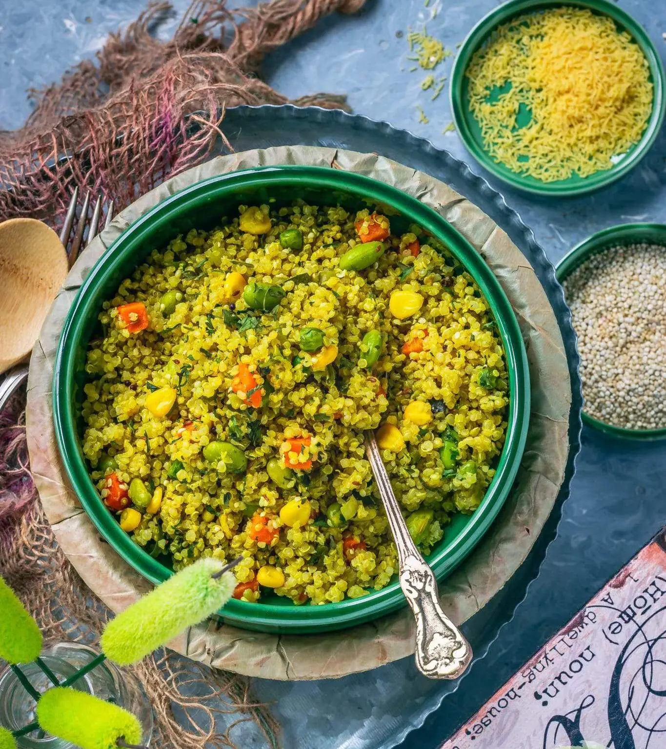 Vegetable Quinoa Upma is a tasty Indian quinoa recipe that can be made under 30 minutes! Loaded with veggies, this light vegan meal is great for healthy eating, easy, and very delicious! We usually eat it for breakfast but it's great for any time of day.