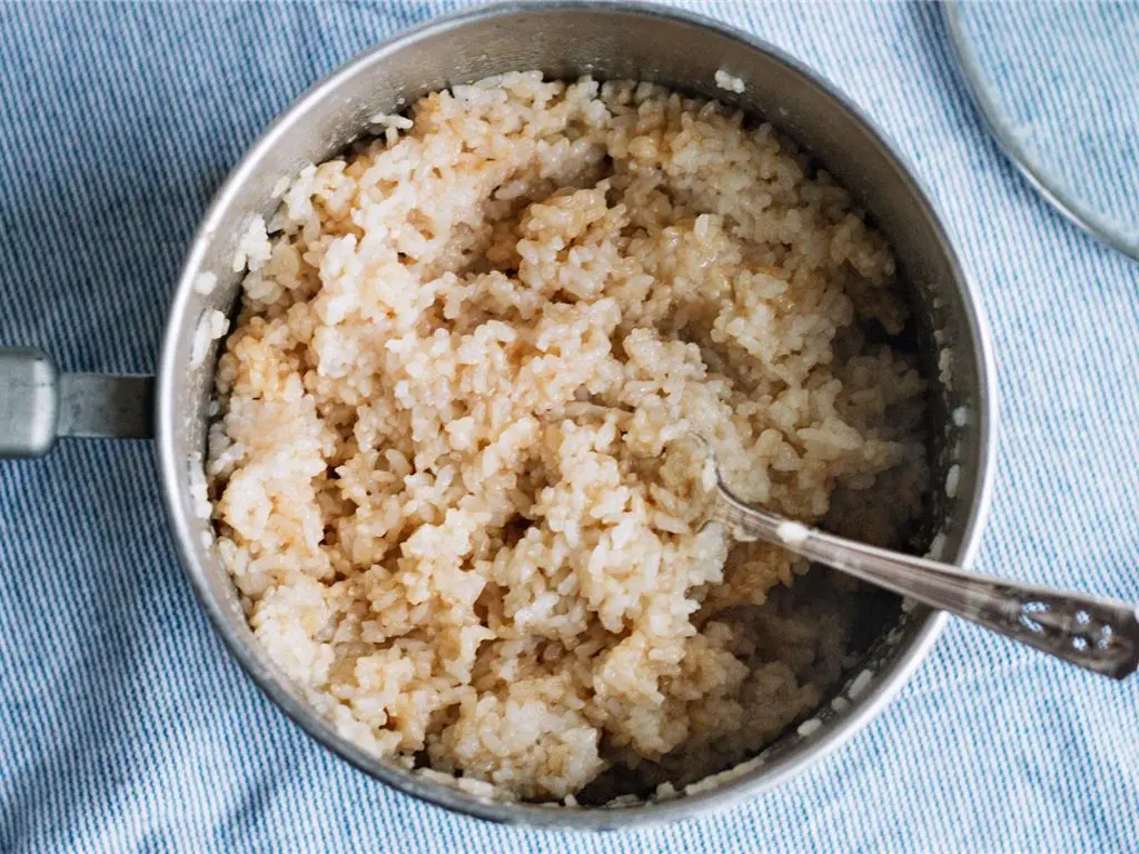 Combine the Soy Sauce (3 Tbsp), Rice Vinegar (2 Tbsp) and Mirin (1 Tbsp) in a small dish. When the rice is fully cooked, stir in the soy sauce mixture.