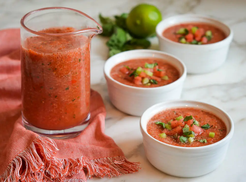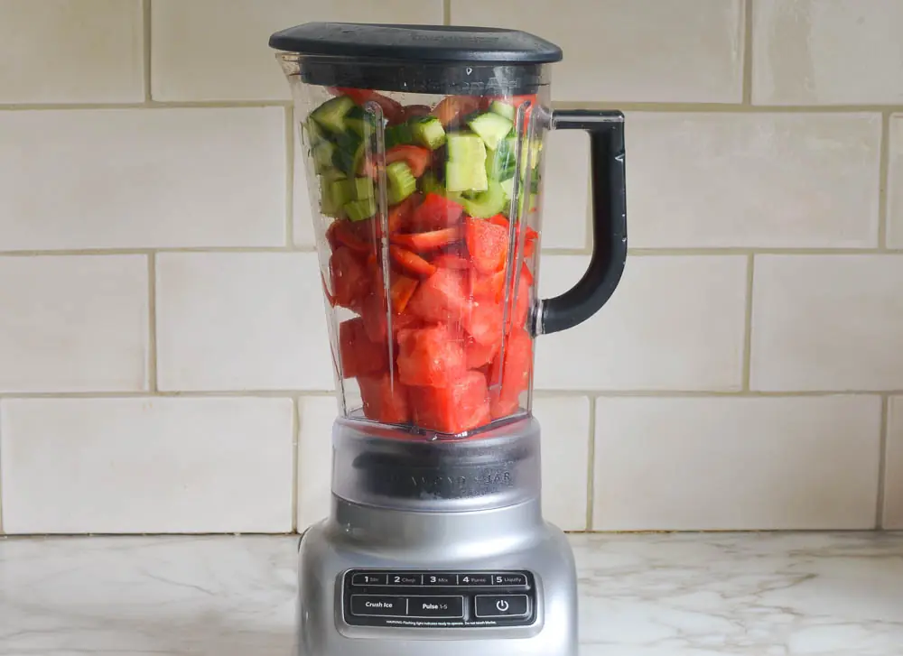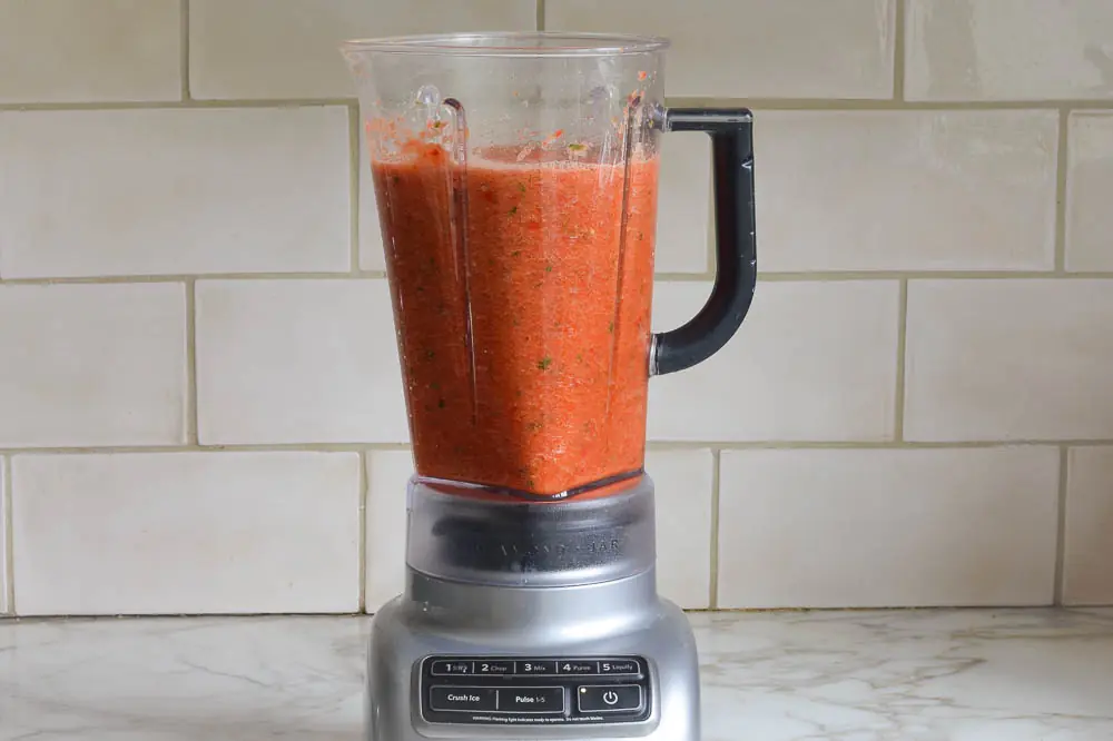 Add the Apple Cider Vinegar (1 Tbsp) into the blender as well. Pulse until it reaches a soup-like consistency. Taste and adjust seasoning, if necessary. Chill in the fridge for 2 to 3 hours before serving